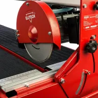 Электрический плиткорез ELITECH ПЭ 1000/92Р поставляется в комплекте с алмазным отрезным диском диаметром 200 мм, который обеспечивает максимальную глубину пропила под прямым углом – 36 мм. Складные опоры обеспечивают как настольный, так и напольный монтаж модели. Для простого перемещения оборудования по помещению предусмотрено два транспортировочных колеса.