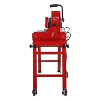 Плиткорез оснащен складными ножками. В собранном виде его удобно перемещать по рабочей площадке за счет опоры, которая выдвигается из-под стола, а также двух колесиков.