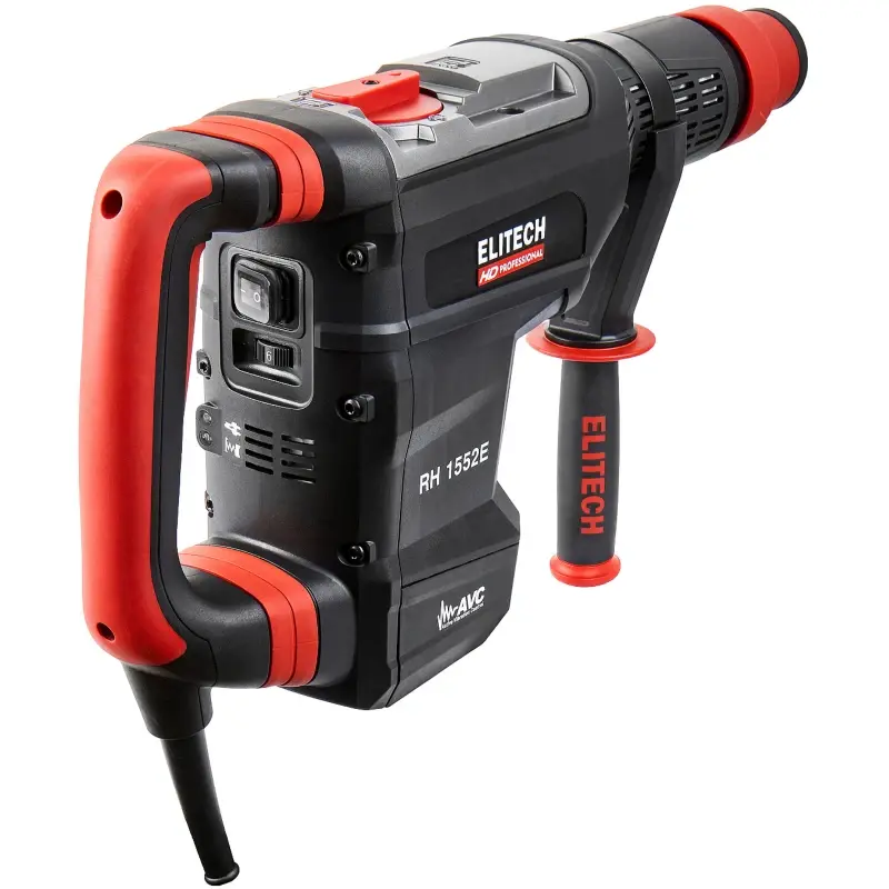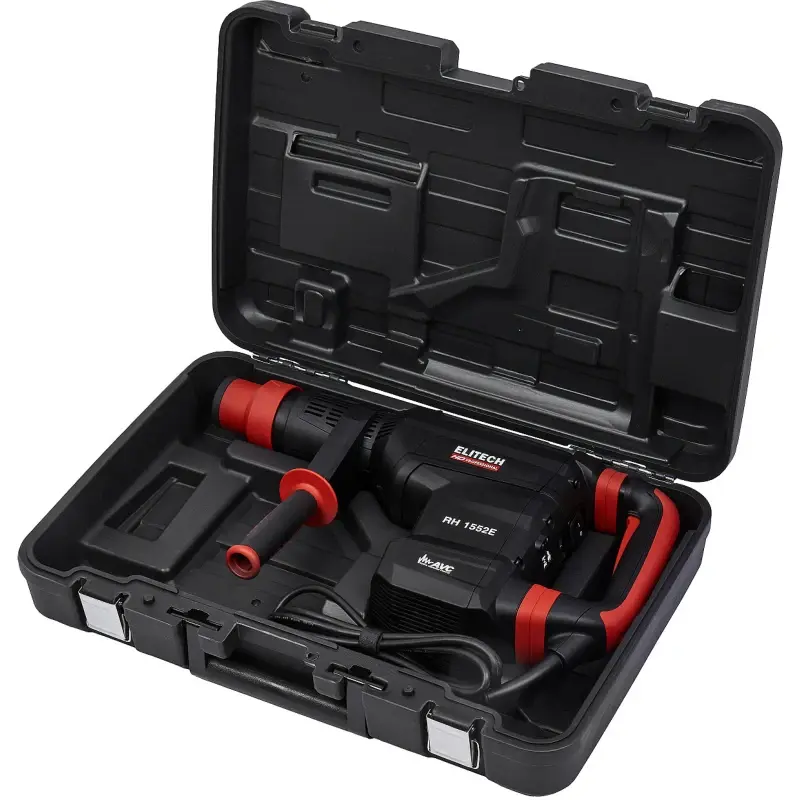 Перфоратор RH 1552E (E2205.020.01). Тип патрона SDS-max. Мощность 1500 Вт. Количество режимов 2 (сверление с ударом, отбойный молоток). Регулировка положения зубила (12 положений). Регулировка оборотов двигателя. Энергия удара 2-15 Дж. Предназначен для работы с буром, диаметром до 52 мм и коронкой, диаметром до 125 мм. Вертикальное расположение двигателя. Антивибрационная система. Индикатор износа щеток двигателя. Индикатор включения в сеть.
