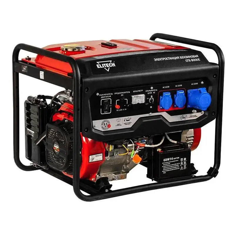 Бензиновый генератор Elitech СГБ 8000Е предназначен для питания бытовой или силовой техники, а также строительного инструмента мощностью до 6 кВт. Электростартер позволяет запускать двигатель одним нажатием кнопки.