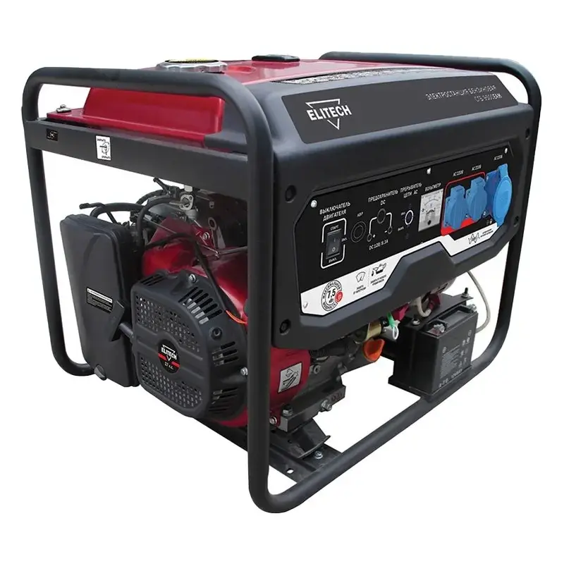 Бензиновый генератор Elitech СГБ 9500ЕАМ предназначен для выработки электроэнергии в качестве резервного источника питания на строительных площадках или дачных территориях. Данная модель оснащена удобной панелью с вольтметром и счетчиком моточасов, который позволяет отслеживать полное рабочее время машины для своевременной технической проверки оборудования. Мощность 4-тактного бензинового двигателя составляет 17 л.с, что подойдет для подпитки дачного дома электричеством.