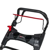 Корпус режущей деки выполнен из стали, ведущая рукоятка – из трубчатого стального профиля с антикоррозийным покрытием черного цвета, травосборник – из износостойкой ткани черного цвета, крышка травосборника, дефлектор бокового выброса, элементы кожуха, фронтальная рукоятка и фиксаторы – из ударопрочного пластика в комбинации черного, серого и красного цветов.