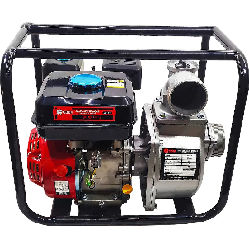 Бензиновая мотопомпа Edon WP-80D – используется для перекачивания чистой или слегка загрязнённой воды из различных резервуаров, для орошения и полива полей, откачивания воды с прудов или затопленных объектов. Она состоит из двигателя, мощностью 7.0 лошадиных сил и насосной установки, которые надёжно закреплены на стальной раме. Водяная помпа Edon WP80 способна перекачивать до 60куб.метров жидкости в час, создаваемый при этом напор, может поднимать воду на высоту до 7 метров. Несмотря на то что мотопомпу Edon WP-80D рекомендуется использовать для чистой воды, при перекачке допускается наличие в жидкости твердых частиц диаметром не более 4-8 мм.