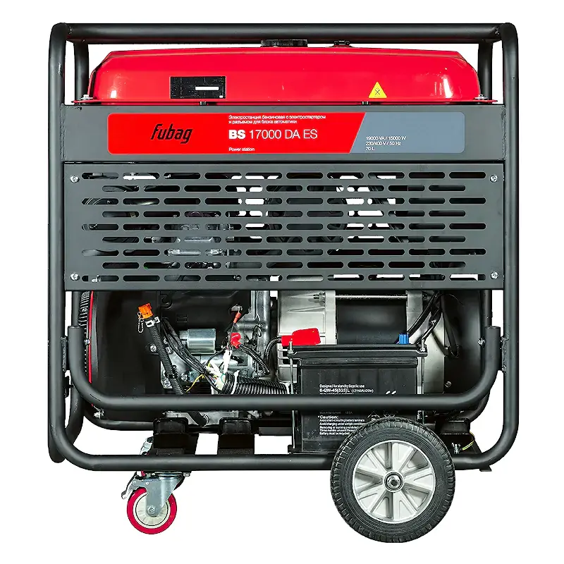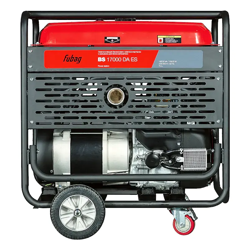 Бензиновый генератор FUBAG BS 17000 DA ES – универсальная передвижная электростанция для подключения однофазной и трехфазной техники. Устройство позволяет запитать несколько потребителей общей мощностью до 16 кВт. Вместительный топливный бак обеспечивает до 8 часов безостановочной работы.