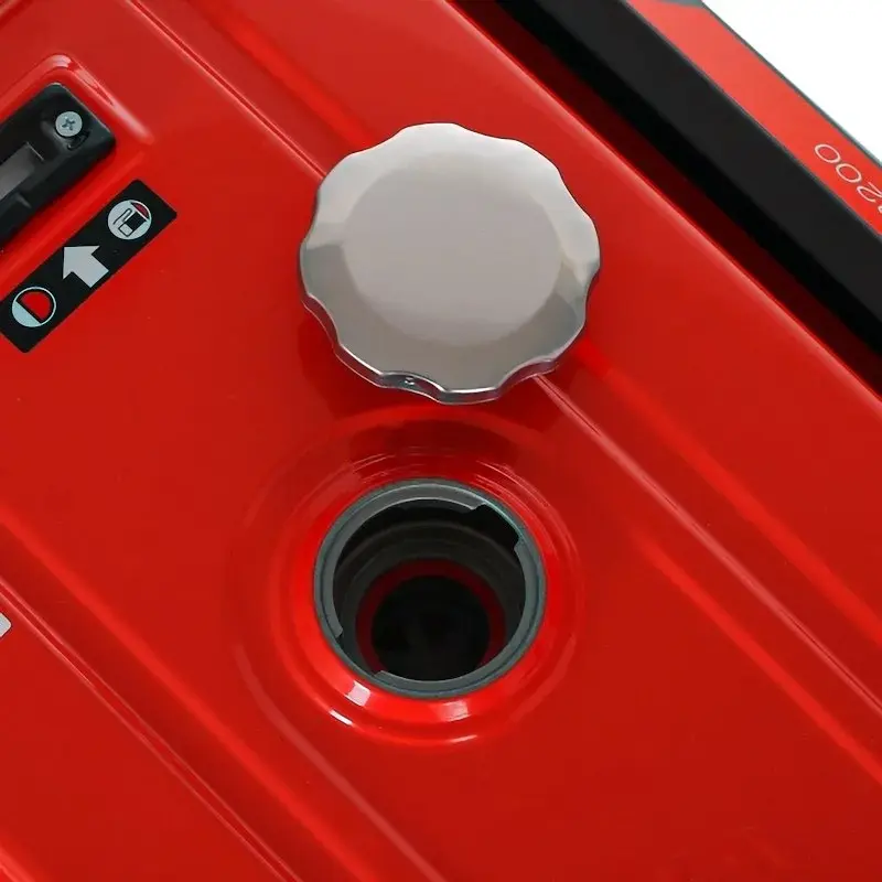 На лицевой панели бензинового электрогенератора размещены две розетки 16 А. Каждый выход имеет защитную крышку, которая плотно закрывается и не пропускает грязи и влаги внутрь. Это позволит хранить модель в пыльном помещении.