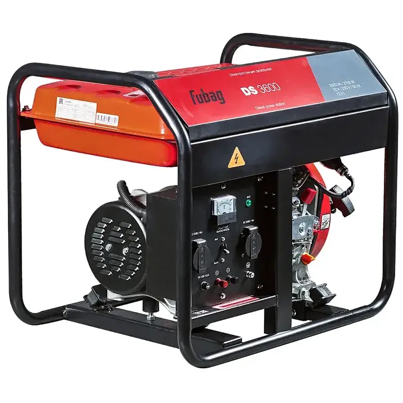 Дизельный генератор FUBAG DS 3600 предназначен для резервного электроснабжения дачного участка или частного дома, автономного питания небольшой мастерской. Благодаря выработке однофазного тока со стабильным напряжением к устройству номинальной мощностью 2,7 кВт можно подключать осветительные приборы, газовый котел, компьютерную технику, холодильник, плиту или электроинструменты. Портативная электростанция работает от дизельного мотора мощностью 5,43 л.с.