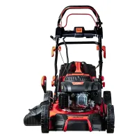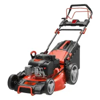 Благодаря электростартеру бензиновая газонокосилка легко заводится одним нажатием кнопки. Данная модель оснащена трехступенчатым переключателем скорости движения. Частота вращения ножа сохраняется независимо от выбранного скоростного режима. Срезанную траву можно либо собирать в подсоединенный травосборник, либо оставлять на газоне. Мульчирующая заглушка позволяет измельчать скошенную растительность и возвращать обратно для удобрения почвы через боковой разгрузочный лоток или задний выброс. При помощи рычага переключения высоты кошения можно выбрать любой из 8 уровней среза травы, который наиболее подходит для ухода за газоном.