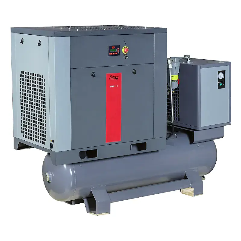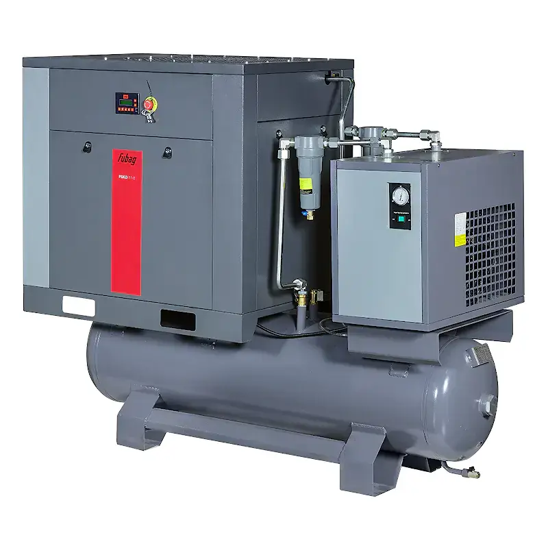 Винтовой компрессор FUBAG FSKD 11-8/270 представляет собой универсальное решение для получения технически сухого сжатого воздуха. Комплектация включает в себя воздушный ресивер, рефрижераторный осушитель и два линейных фильтра.