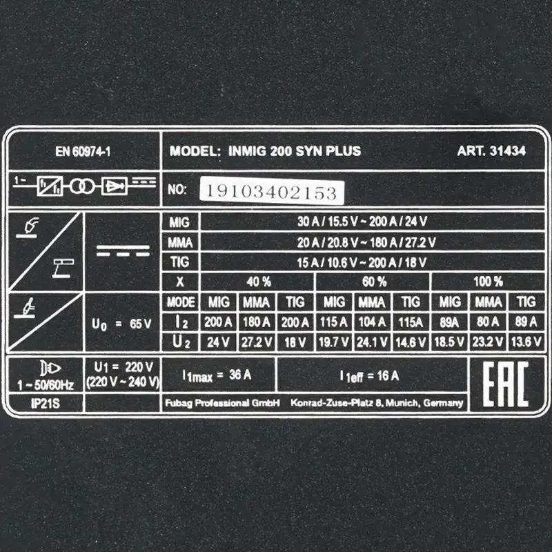 Сварочный полуавтомат Fubag INMIG 200 SYN PLUS обладает максимальным сварочным током 200 А, имеет 3 режима работы и поддерживает индуктивность при использовании MIG-сварки. Поставляется в комплекте с горелкой FB 250.
