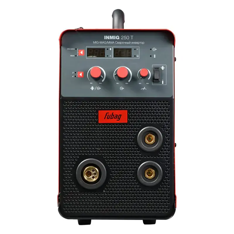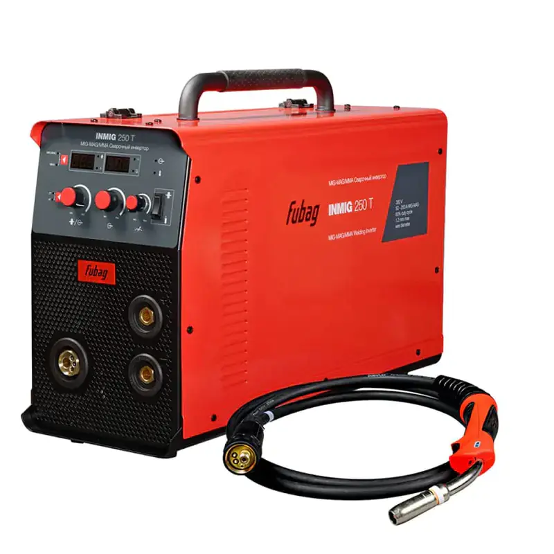 Инверторный сварочный полуавтомат Fubag INMIG 250T НАКС, работающий от трехфазной электросети напряжением 380 В, предназначен для электродуговой сварки в ручном и полуавтоматическом режимах при сварочном токе от 50 до 250 А. Благодаря удобной настройке и возможности гибкой регулировки параметров аппарат обеспечивает качественную сварку как штучными покрытыми электродами, так и проволокой в среде защитного газа.