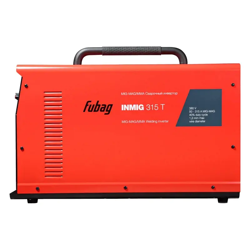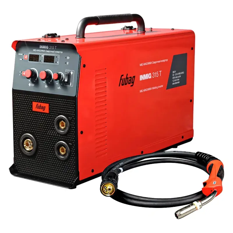 Инверторный сварочный полуавтомат Fubag INMIG 315T, работающий от трехфазной электросети напряжением 380 В, предназначен для электродуговой сварки в ручном и полуавтоматическом режимах в диапазоне сварочного тока от 50 до 315 А. Благодаря удобной настройке и возможности гибкой регулировки параметров аппарат обеспечивает качественную сварку как штучными покрытыми электродами, так и проволокой в среде защитного газа. Максимальная потребляемая мощность составляет 10 кВт.