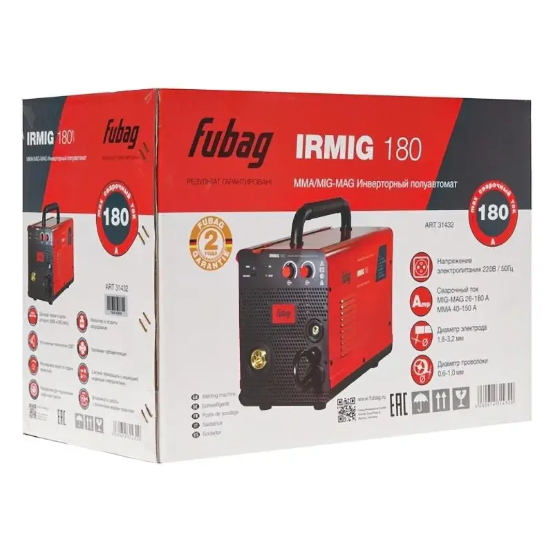 Для того, чтобы сварочный инвертор Fubag IRMIG 180 прослужил долгие годы, есть система защиты. От срабатывает при перегреве или перегрузки. В этом случае работа двигателя автоматически останавливается, предотвращая преждевременную поломку.