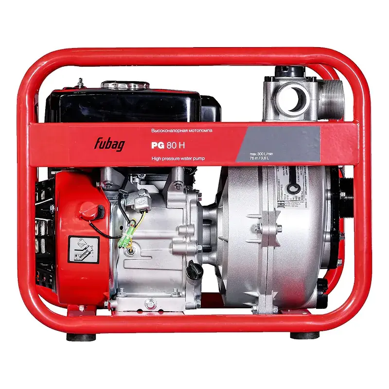 Высоконапорная мотопомпа FUBAG PG 80 H востребована в таких областях, как тушение пожаров, орошение, перекачка чистой воды в хозяйственных целях. Максимальная производительность составляет 300 л/мин. Насос забирает воду с глубины до 7 м и создает напор до 76 м для подачи на большие расстояния по шлангам. Входной фильтр пропускает песок и твердые частицы диаметром не более 4 мм.