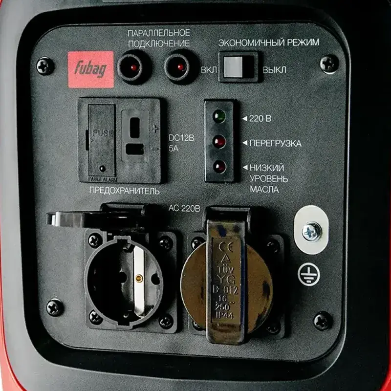 Инверторный генератор FUBAG оборудован электронным многофункциональным дисплеем, на котором отображаются рабочие параметры, помогающие следить за состоянием оборудования. Такая информация, как количество оборотов двигателя и потребляемая мощность, поможет предотвратить перегрузку. Данные о моточасах нужны для своевременного проведения техобслуживания.