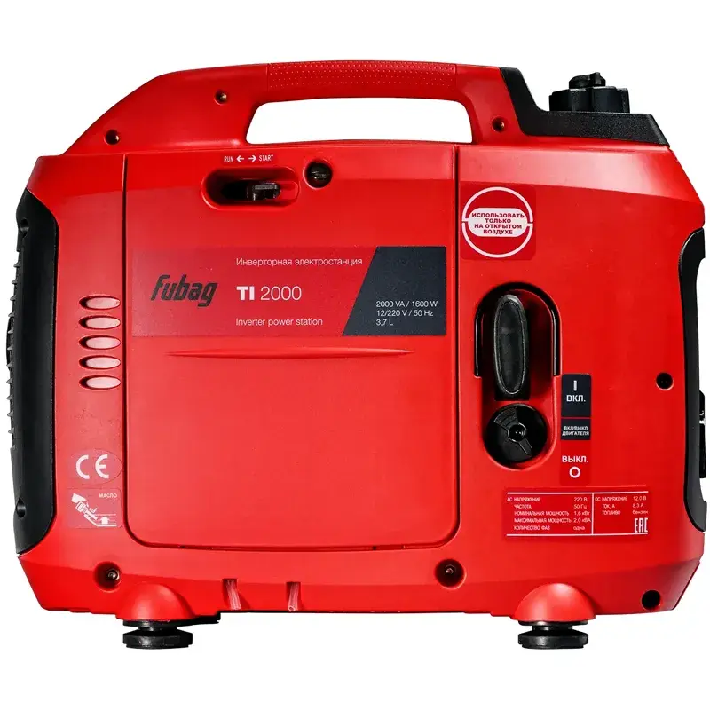 Инверторный генератор FUBAG TI 2000 в закрытом шумопоглощающем кожухе имеет компактные размеры и небольшой вес, позволяющие легко переносить его за верхнюю ручку и брать с собой в поездки. Благодаря инвертору, обеспечивающему высокое качество тока, к электростанции можно подключать чувствительную к перепадам напряжения бытовую технику, не опасаясь ее поломки. Устройство рассчитано на суммарную потребляемую мощность 1,6 кВт. В случае превышения нагрузки срабатывает автоматический аварийный выключатель. Устройство оснащено четырехтактным бензиновым двигателем с ручным стартером и воздушным охлаждением.