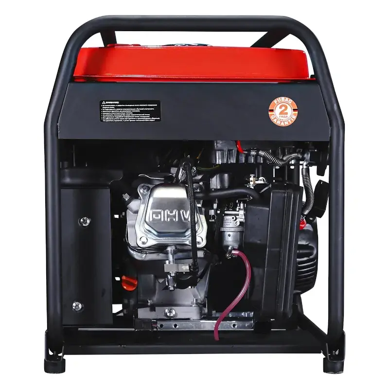Бензогенератор Fubag TI 4300 открытого типа оснащен защитной рамой. Она представляет собой металлическую трубу, которая огибает весь корпус. Нижняя часть служит в качестве опоры, а верхняя представляет собой транспортировочные рукоятки.
