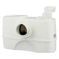 Производительный и надежный насос, измельчитель с лезвиями из никелированной нержавеющей стали значительно продлевают срок службы станции и не требуют ежедневного технического обслуживания. Простое техобслуживание в случае засорения или блокировки электродвигателя с возможностью демонтажа насосного блока путем откручивания двух винтов, уникальный сливной клапан, обеспечивающий чистоту и отсутствие проблем при техобслуживании. Обратные клапаны встроены в напорную трубу. Может отводить стоки от унитаза и 1 дополнительного источника (например, умывальника, душевой кабины и биде). Международный класс защиты: IP44.