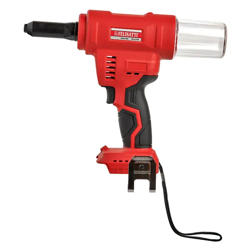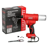 Пистолет для установки заклепок Felisatti ПЗ-6,4/18 Л3 оснащен инновационным бесщеточным двигателем, развивающим, по сравнению с щеточными двигателями, больший момент и обладающего повышенной экономичностью в энергопотреблении. Такой мотор имеет более высокий КПД, служит дольше, не требует замены щеток, а также может работать в непосредственной близости от огнеопасных предметов, поскольку у него нет искрения между щетками и коллектором.