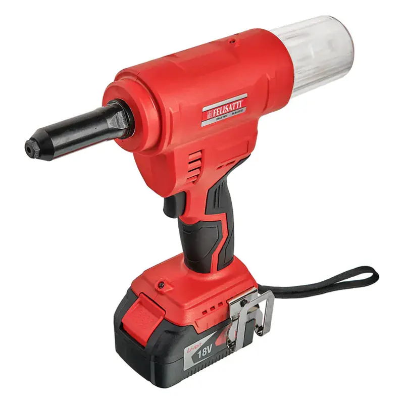 Несколько заклепок можно установить ручным заклепочником. В продаже имеются и сетевые электрические заклепочники. Но если у вас большой объем работы с заклепками в удаленных от источников электричества местах, например, крепление профлиста на садовом участке, или монтаж фасадов, то аккумуляторный пистолет для установки заклепок Felisatti ПЗ-6,4/18 Л3 для вас просто незаменим.