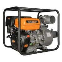 Мотопомпа бензиновая FoxWeld 1500W100 - высокопроизводительная помпа для обустройства полива больших площадей и для перекачивания больших объёмов чистой воды, например из бассейнов, садовых или пожарных водоёмов. Эффективна для устранения подтоплений подвалов, водоёмов, последствий протечек. Для работы устройства электричество не требуется. При средней нагрузке данная модель способна перекачивать жидкость с производительностью 1500 литров в минуту, при максимальном напоре 28 метров. Запуск мотопомпы осуществляется с помощью ручного стартера.