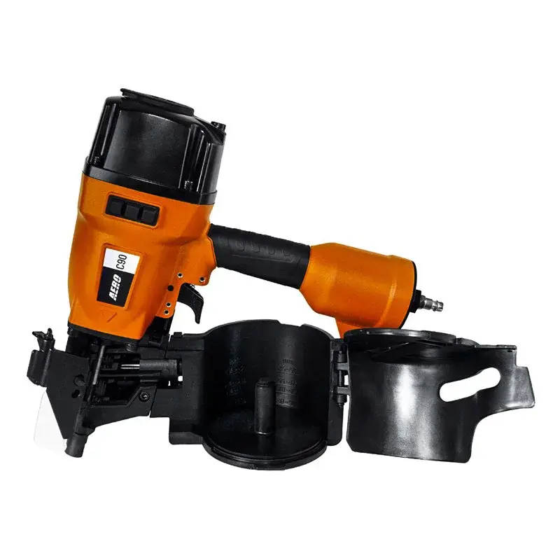 Пневматический гвоздезабивной пистолет FoxWeld AERO C90 – инструмент используется для забивания барабанных гвоздей длиной от 40 до 90 мм в любую породу дерева. Для работы с моделью понадобятся компрессор и воздушная магистраль, которые докупаются отдельно. Магазин инструмента вмещает до 300 гвоздей.