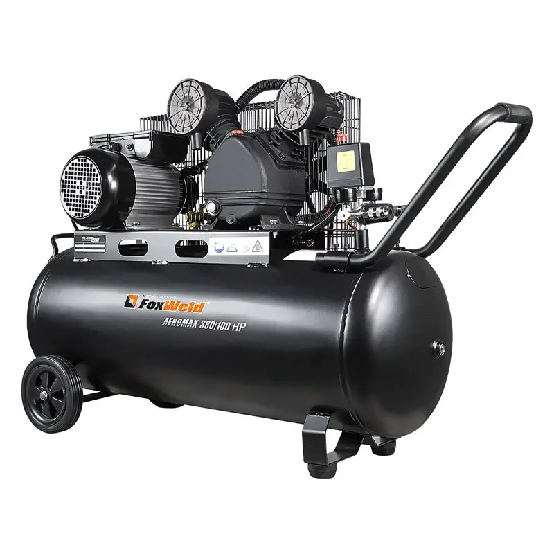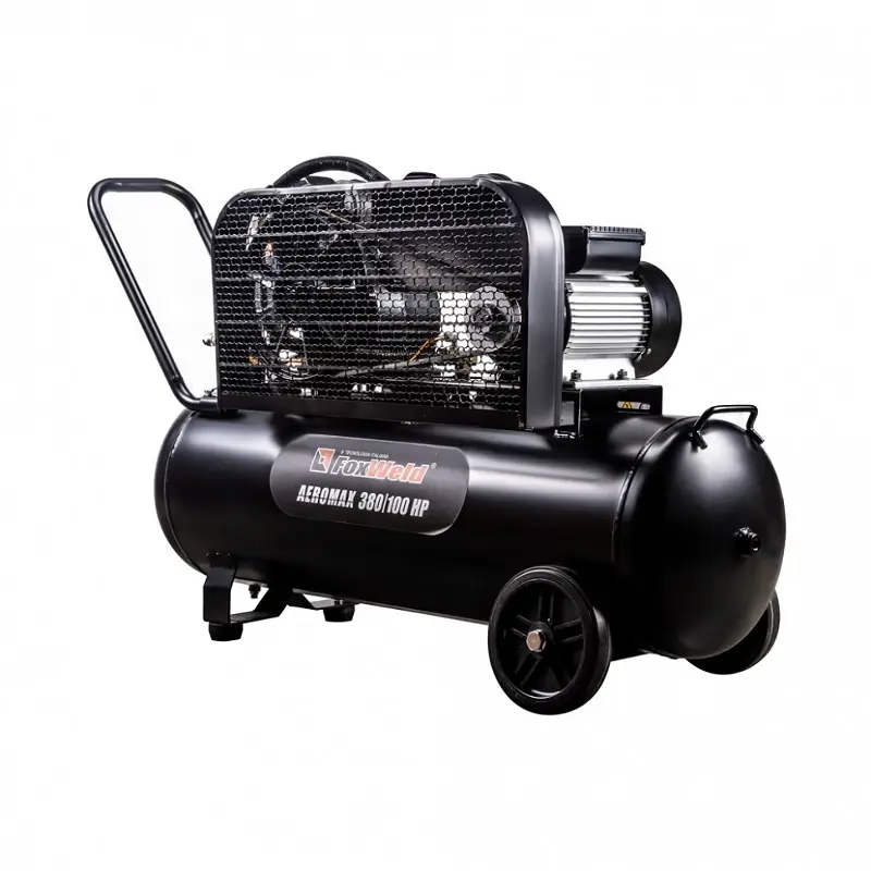 Компрессор AEROMAX 380/100 HP — ременной компрессор с большой производительностью. Оснащен ресивером на 100 литров. Данный агрегат сконструирован на базе V-образной двухцилиндровой головки с ременным приводом, что обеспечивает высокий КПД при небольших оборотах (низком уровне шума) и долгий срок службы компрессора. Предусмотрена регулировка и визуальный контроль выходного давления за счет встроенных манометров и регулятора.