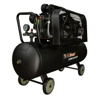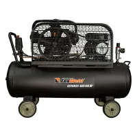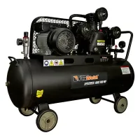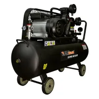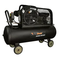 Трехцилиндровый одноступенчатый масляный компрессор оснащен W-образной поршневой группой, которую приводит в действие однофазный электродвигатель мощностью 2,2 кВт. Ременная передача способствует более плавному пуску, поддерживает высокий КПД при сравнительно низких оборотах, улучшает тепловой и нагрузочный режимы двигателя. Передаточное колесо выполнено в виде крыльчатки для дополнительного охлаждения поршневой группы. Оребрение головок цилиндров и воздухопровода улучшает теплоотдачу. В нижней части ресивера с антикоррозионным полимерным покрытием предусмотрена пробка для слива конденсата.
