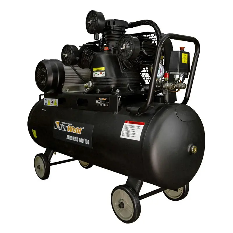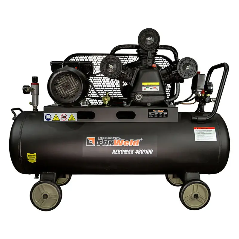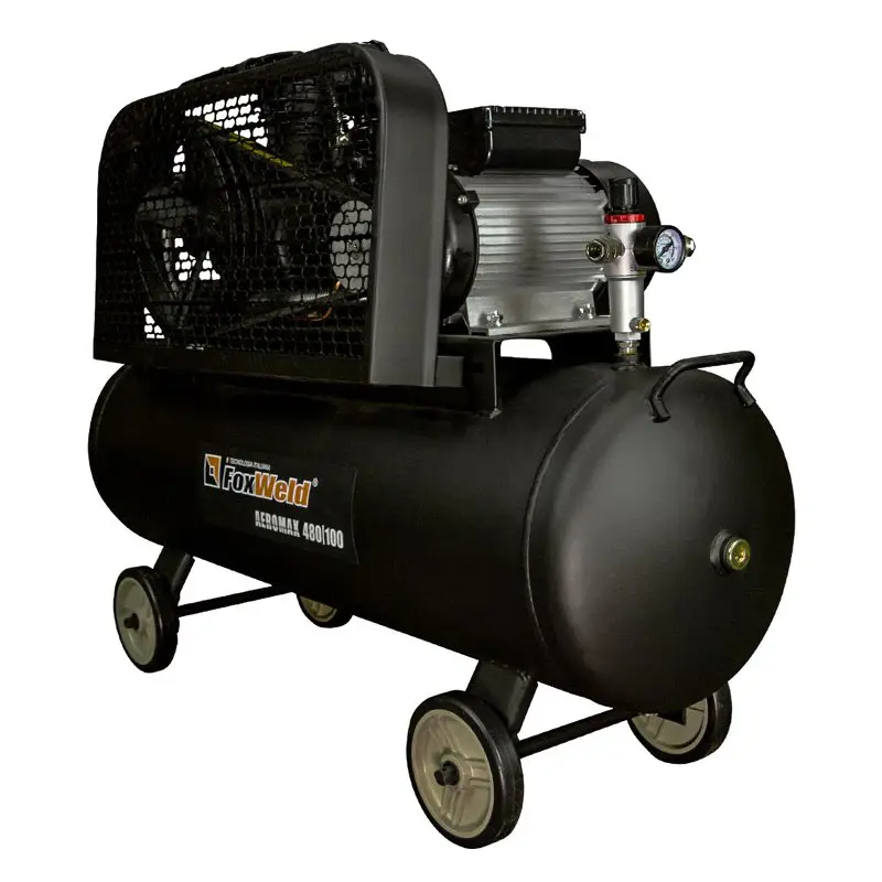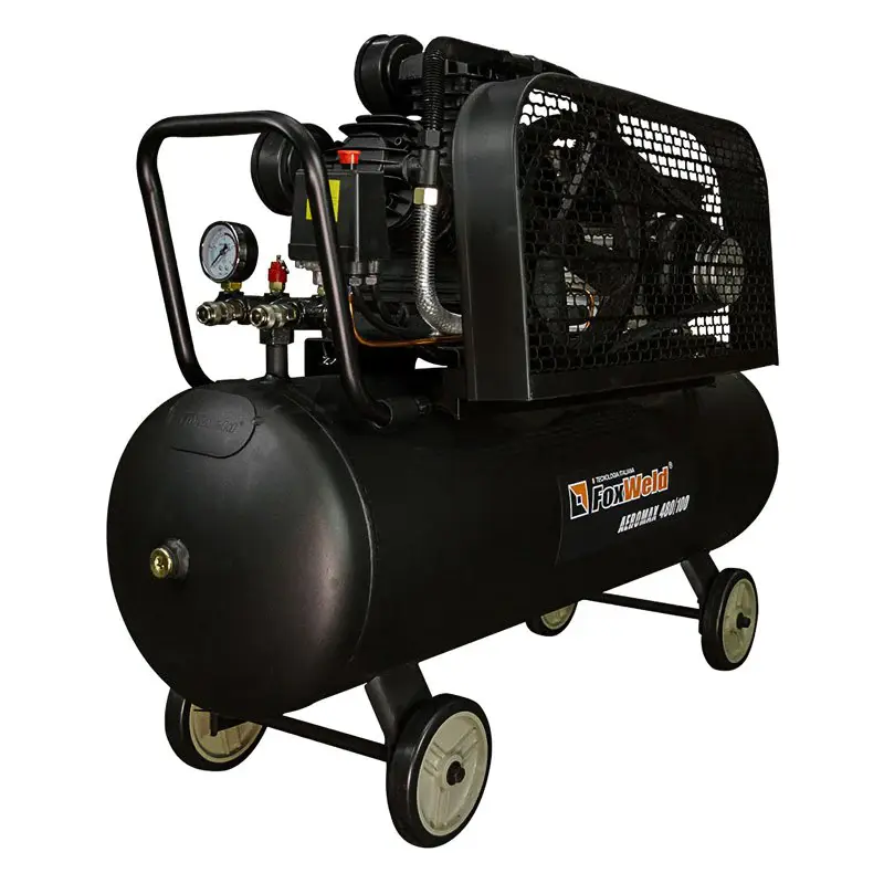 Масляный компрессор FoxWeld AEROMAX 480/100 с производительностью 480 л/мин отлично подходит для подключения мощного пневмоинструмента, например, шлифовальной машины или гайковерта. За счет ременного типа модель рассчитана на подключение нескольких потребителей и большие нагрузки.
