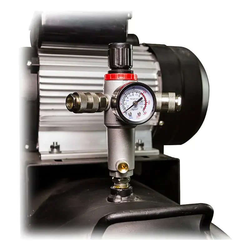 Рабочее давление регулируется вручную до максимального значения. Это позволит выбрать оптимальный параметр под конкретный пневмоинструмент. При этом удобно ориентироваться по манометру выходного давления.