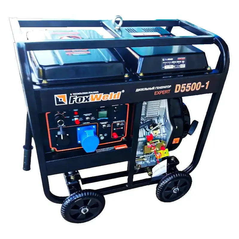 Дизельный генератор FoxWeld Expert D5500-1 - мощный и надёжный в применении резервный источник электричества на силовой раме классической компоновки для стационарного использования. Предназначен для обеспечения резервным электричеством большинства бытовых приборов.