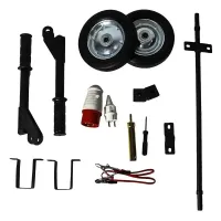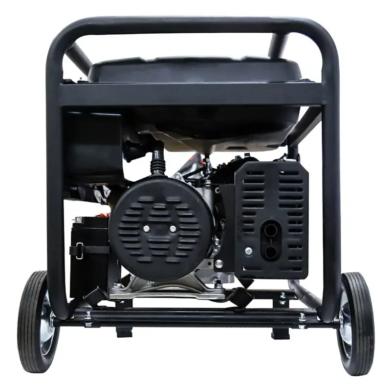 Генератор FoxWeld Expert G9500-3 легко запустить поворотом ключа в замке зажигания. В конструкции также предусмотрен традиционный ручной стартер. Мини-электростанция смонтирована на прочной металлической раме, благодаря чему сохраняется свободный доступ к основным узлам для технического обслуживания. Генератор поставляется с транспортировочным комплектом из двух колес и складных ручек, которые облегчают его перемещение.