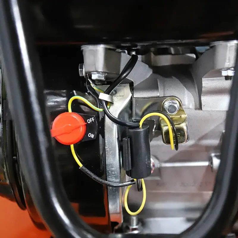 Бензиновая виброплита оснащена мощным четырехтактным двигателем внутреннего сгорания объемом 196 см3. При критическом понижении масла в картере встроенный датчик останавливает работу двигателя для предотвращения поломки. Топливный бак вмещает 3,6 л бензина АИ-92. Максимальный расход топлива составляет 1,2 л/ч.