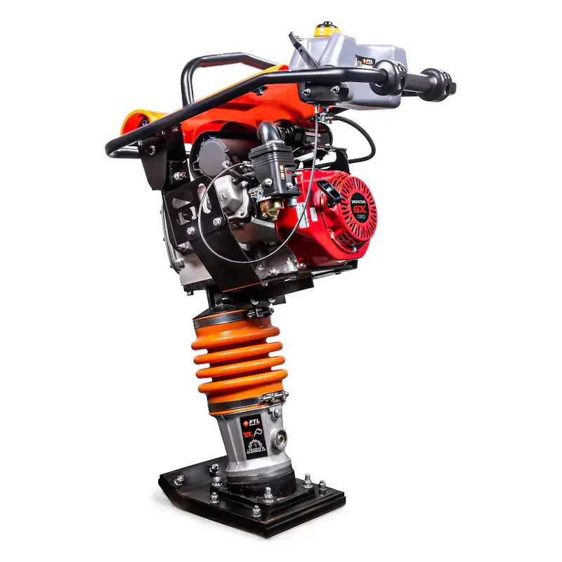 Производительный обслуживаемый виброузел выдаёт ударный момент 12 кН вкупе с цельносварной опорной плитой вибротрамбовка достигает рабочего веса около 75 кг и позволяет добиваться уплотнения рабочей поверхности до 350 мм.