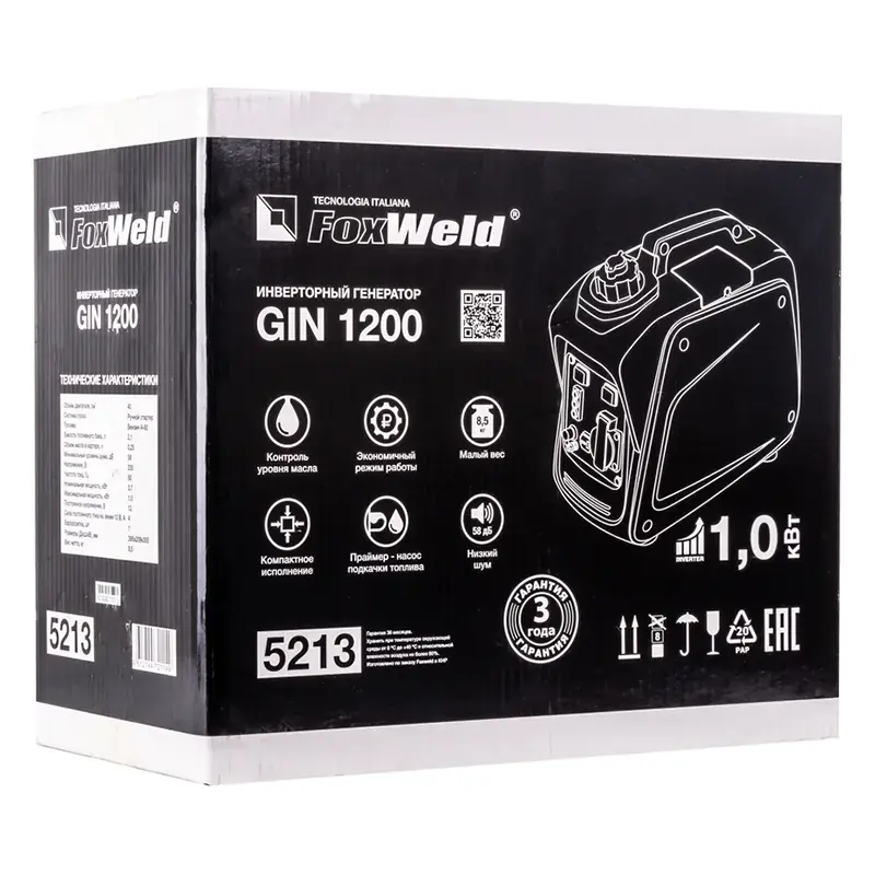 Инверторный генератор FoxWeld GIN 1200 обеспечивает выработку тока со стабильными показателями частоты и напряжения. Это позволяет подключать к электростанции такое электронное оборудование, как ноутбуки, компьютеры, измерительные приборы, бытовую технику. Благодаря шумопоглощающему кожуху уровень шума во время работы электростанции не превышает 58 дБ. Время непрерывной работы автономного источника питания составляет 4,1 часа при полной номинальной нагрузке 0,7 кВт. Генератор оснащен четырехтактным бензиновым двигателем с ручным стартером.