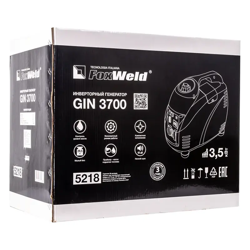 Инверторный генератор FoxWeld GIN 3700 используется в качестве альтернативного источника электроэнергии на стройке, во время ремонта, в походе, в кемпинге, на рыбалке. Модель оснащена четырехтактным бензиновым двигателем, обеспечивает максимальную выходную мощность до 3,5 кВт. Высокое качество тока позволяет подключать к устройству даже чувствительное оборудование и аппаратуру.