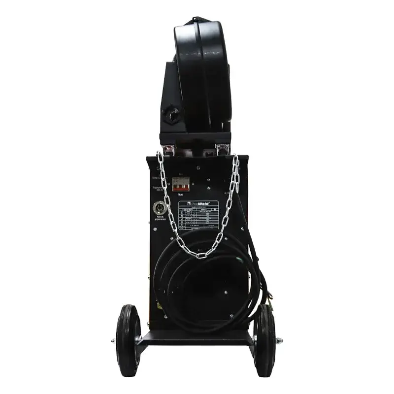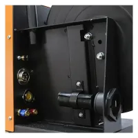 Подача проволоки с диаметром сечения до 1,6 мм производится с помощью стального механизма с четырьмя роликами. Для этой модели сварочного инвертора подходят большие катушки диаметром до 300 мм весом до 15 кг. Для ручной электродуговой сварки MMA используются штучные электроды с диаметром сечения 1,6-6 мм. Система защиты предотвращает поломку электроники и силовых компонентов в случае перегрузки.