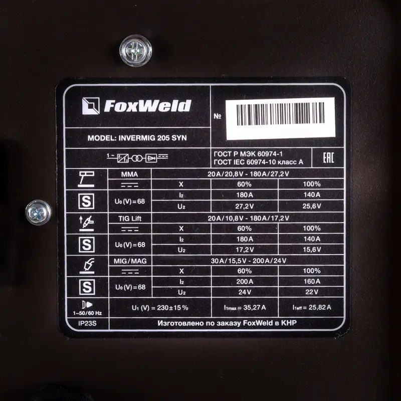 Многофункциональный сварочный полуавтомат FOXWELD INVERMIG 205 SYN с синергетическим режимом управления позволяет производить сварку постоянным током, используя инверторную технологию преобразования и управления сварочным током, что уменьшает габариты и вес по сравнению с традиционными трансформаторными полуавтоматами. С помощью этой модели можно проводить полуавтоматическую сварку (MIG/MAG) сплошной проволокой в среде защитного газа и самозащитной проволокой без использования защитного газа в ручном и синергетическом режимах, ручную дуговую сварку (ММА) на постоянном токе штучным покрытым электродом с рутиловым и основным покрытием и аргонодуговую сварку (ТIG LIFT) на постоянном токе с возбуждением дуги касанием вольфрамового электрода. Регулировка индуктивности позволяет вести процесс сварки с минимальным разбрызгиванием металла и приспосабливать процесс к любому типу работ. На задней панели расположена розетка 36 В для подключения подогревателя газа, который необходим для защиты обледенения редуктора во время продолжительной работы.