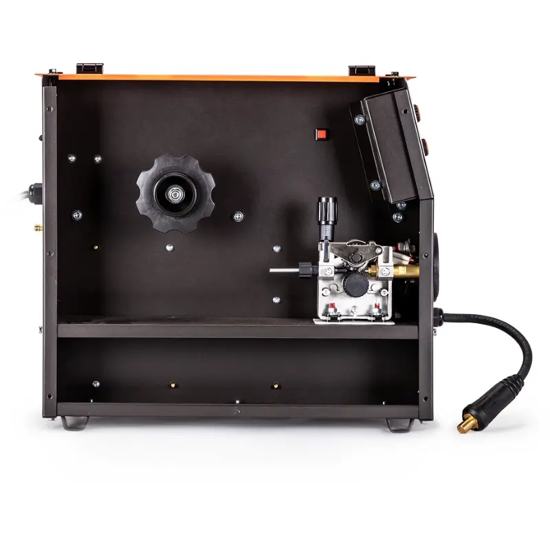 В аппарате используется 2-роликовый полноприводный механизм подачи сварочной проволоки с двумя ведущими роликами. Полноприводный механизм подачи обеспечивает стабильную подачу сварочной проволоки при использовании длинных горелок и при продолжительном сварочном процессе. 2 ведущих ролика – это минимальная деформация и давление на проволоку, что критично для качественной сварки алюминия и сплавов.