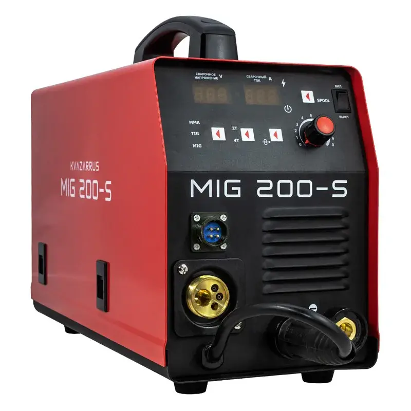 Сварочный полуавтомат FoxWeld KVAZARRUS MIG 200-S позволяет настраивать сварочный ток до 170 А в режиме MMA, до 200 А при MIG/MAG или до 270 А при выборе TIG LIFT. Функции Anti Sticking, Hot Start, Arc Force облегчают работу и обеспечивают качественный результат на выходе.