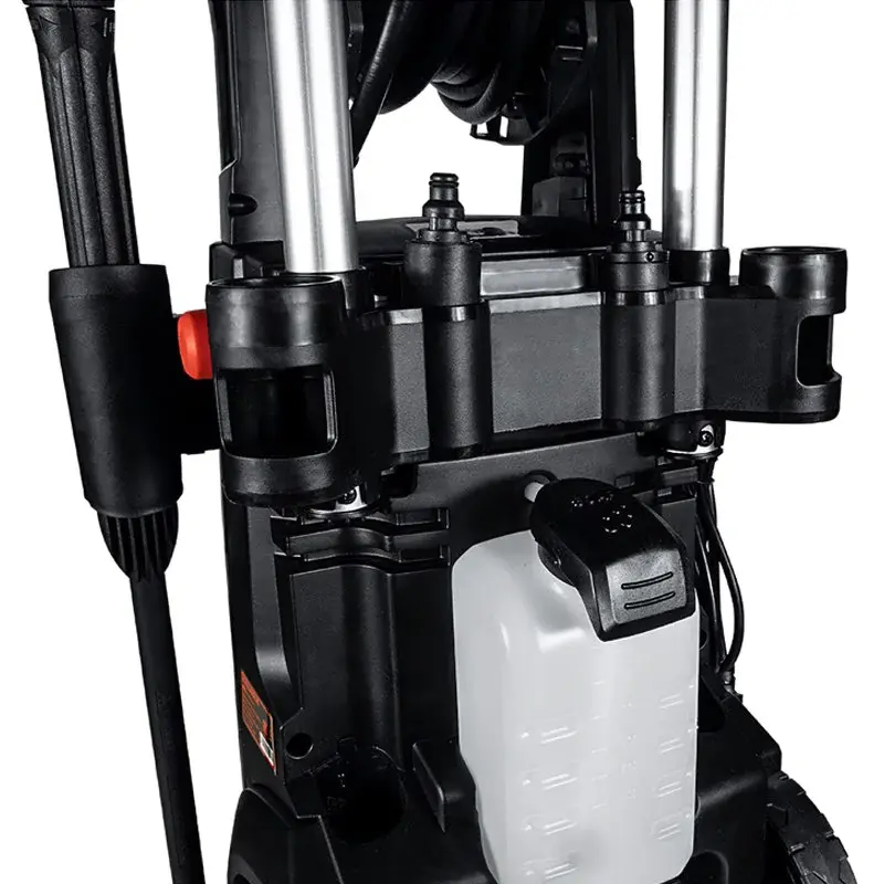 Мойка оснащена алюминиевой помпой, индукционным двигателем, который отличается долгим сроком службы, продолжительным режимом работы и низким уровнем шума. Так же в данной модели есть встроенный органайзер для аксессуаров.