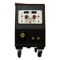 Сварочный полуавтомат FoxWeld UNO MIG 250 DOUBLE PULSE – универсальная модель, которая поддерживает большое количество режимов работы: MIG/MAG, PULSE, DOUBLE PULSE, а также ММА. Максимальный сварочный ток составляет 250 А. Для простого перемещения аппарата по помещению предусмотрено два больших транспортировочных колеса и два поворотных ролика.