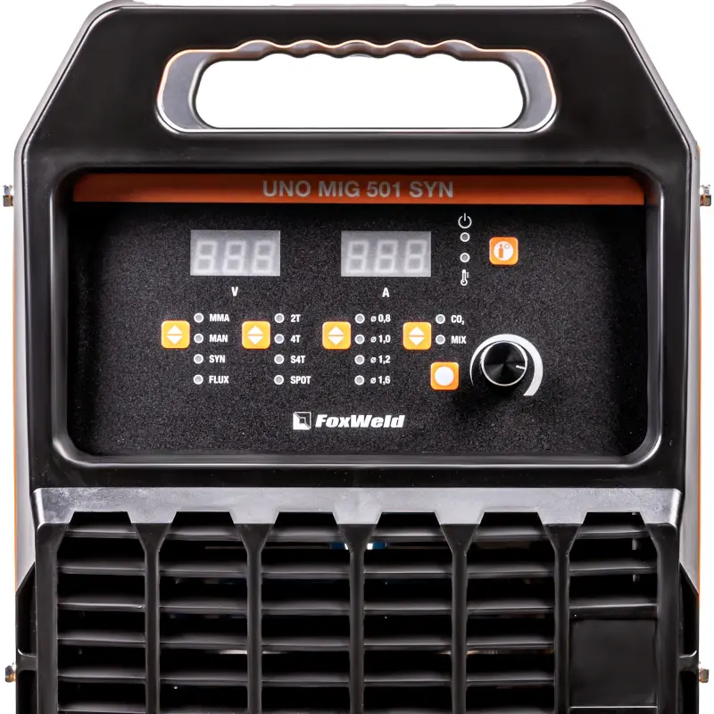 Сварочный полуавтомат инверторного типа FOXWELD UNO MIG 501 SYN с синергетическим управлением предназначен для широкого использования в отраслях по производству металлоконструкций, в сервисных металлоцентрах, при ремонте и восстановлении. FOXWELD UNO MIG 501 SYN позволяет производить сварку изделий из низкоуглеродистой и легированной стали и алюминия. Максимально надёжная сварочная установка с отдельным 4-роликовым полноприводным механизмом подачи проволоки идеально подойдёт для стационарного рабочего места сварщика.