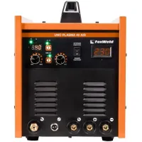 Аппарат плазменной резки со встроенным компрессором UNO Plasma 40 Air – многофункциональный современный источник питания, который широко применяется при резке углеродистой и нержавеющей стали, алюминиевых сплавов и других металлов. UNO Plasma 40 Air позволяет разрезать сталь толщиной до 15 мм. Высокие динамические характеристики дуги, регулировка и точность установки тока, инверторная технология обеспечивают качество реза и экономию энергии. В аппарате также предусмотрен дополнительный режим сварки штучными электродами ММА. Встроенный фильтр-регулятор позволяет регулировать давление сжатого воздуха и осушать/очищать подаваемый компрессором воздух в зону плазменной дуги в процессе работы. 2 цифровых дисплея на передней панели управления отображают установленные значения тока резки/сварки и напряжения сети.