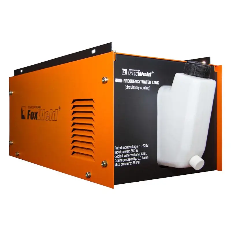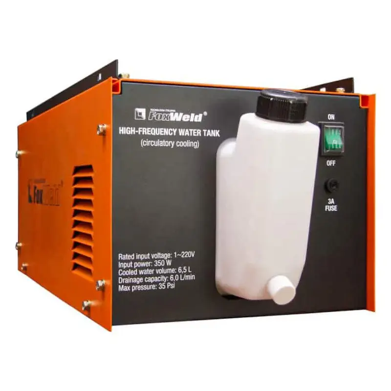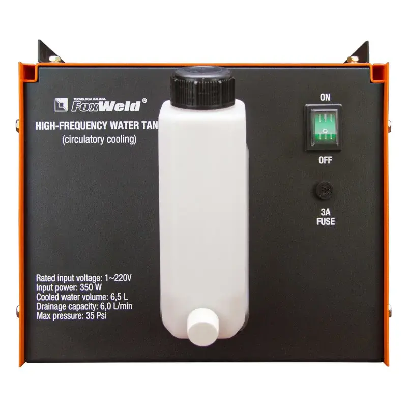 Блок жидкостного охлаждения FoxWeld подходит для полуавтоматических сварочных аппаратов INVERMIG 350Е и 500E того же производителя. Устройство помогает снизить температуру деталей и узлов горелки, препятствуя их прогоранию.