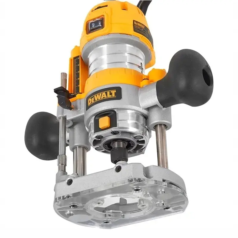 Фрезер DEWALT D26203 имеет две удобные прорезиненные рукоятки, что обеспечивает комфорт при работе и хорошую управляемость инструмента. Для легкой смены оснастки предусмотрена функция блокировки шпинделя.