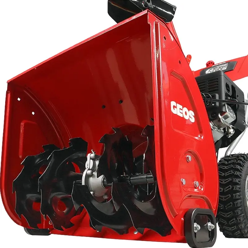 Бензиновый снегоуборщик Geos поддерживает шесть передних передач и две скорости заднего хода, повышающие его маневренность и проходимость. Опорные лыжи на ковше регулируются по высоте. Это позволяют выбрать оптимальный зазор над поверхностью для качественной очистки дороги без повреждения ее покрытия.