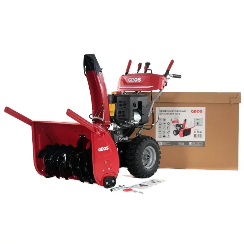 Колёса со специальным зимним протектором, имеющим развитые грунтозацепы в покрышках, обеспечивают прекрасное сцепление с грунтом или со снегом, они способны уверенно идти и по льду и по рыхлому снегу. На снегоуборщик GEOS Arctic Line 700 E установлен специальный зимний двигатель - работает при любых минусовых температурах. В отличии от летних двигателей спроектирован специально для работы в зимних условиях: нет воздушного фильтра, увеличенная рукоятка пускового троса (для возможности заводить двигатель в перчатках), дополнительные защитные кожухи (двигатель быстрее прогревается и выходит на рабочий режим, стабильнее работает в морозы).