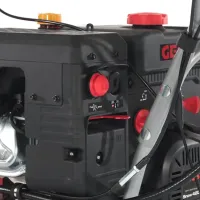 Все управление снегоуборочной машиной вынесено на панель оператора - направление и дальность выброса, включение и отключение подогрева рукояток, все находиться "под рукой". Особенность этого снегоуборщика- это гусеницы. Они делают снегоуборщик более устойчивым на обледенелых участках и склонах . Так как у гусениц площадь контакта с поверхностью больше , чем у колесных , соответственно пробуксовка практически полностью исключена , что позволяет более уверено убирать большие сугробы.