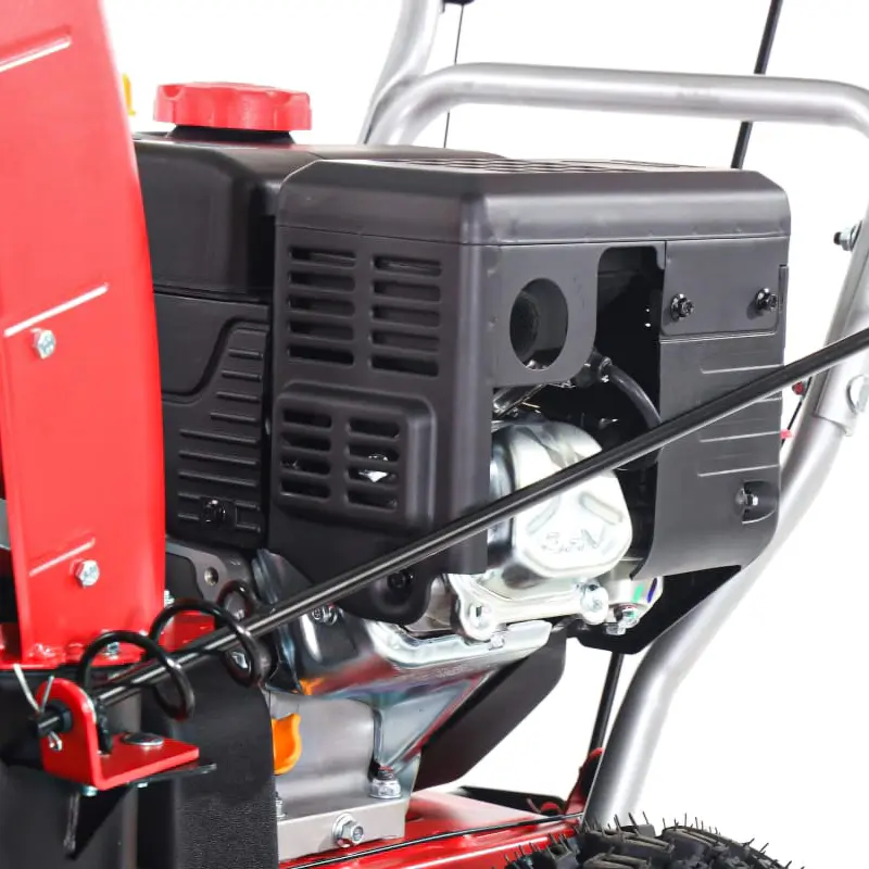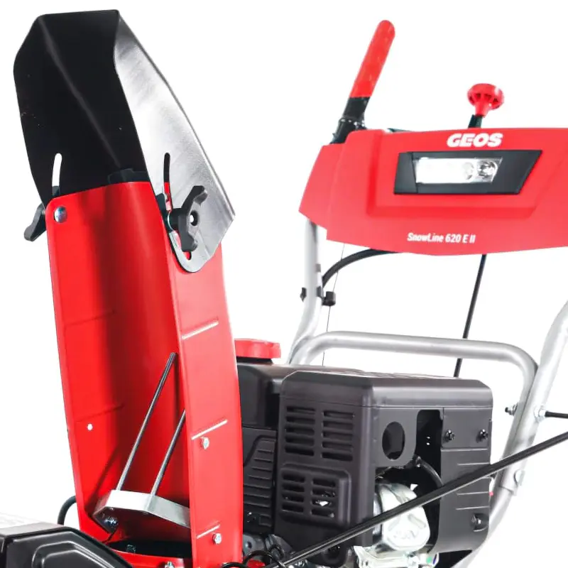 Снегоочиститель Geos SnowLine 620E II - это надежный и мощный помощник для уборки снега на даче или в загородном доме. Он оснащен двигателем Lonchin OHV мощностью 6 л.с., который может работать в любых погодных условиях. Снегоочиститель имеет двухступенчатую систему очистки снега: шнек с рельефной формой захватывает и измельчает снег, а турбина выбрасывает его на расстояние до 15 метров. Вы можете регулировать направление и угол выброса снега с помощью поворотного желоба.