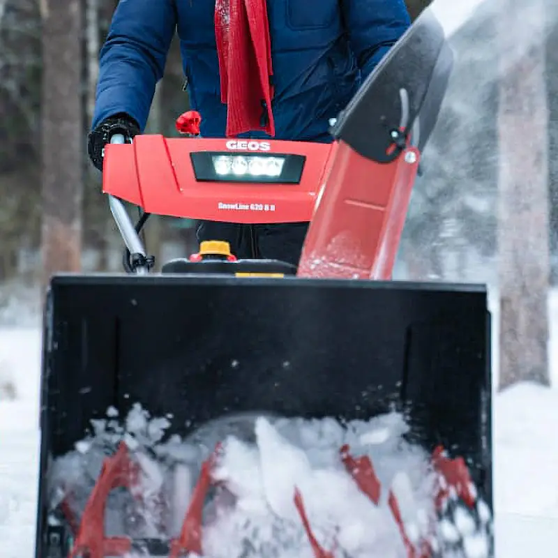 Бензиновый снегоуборщик Geos SnowLine 620E II имеет ширину захвата 62 см и высоту забора снега 51 см, что позволяет ему быстро и эффективно расчищать большие площади от снега любой плотности. Он также имеет механическую трансмиссию с пятью передними и двумя задними скоростями, которые обеспечивают удобный и безопасный маневр на разных поверхностях. Колеса с агрессивным протектором и зимними шипами гарантируют хорошую проходимость и устойчивость на скользком и неровном грунте.